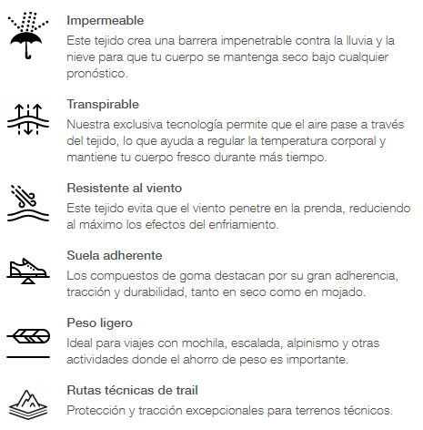 • Membrana GORE-TEX que ofrece impermeabilidad total y transpirabilidad avanzada.